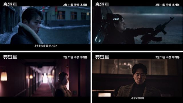 공개된 첫 번째 포스터에는 국제범죄의 정황을 추적하는 국정원 블랙 요원 조 과장(조인성 분)을 중심으로 블라디보스토크에 급파된 북한 보위성 조장 박건(박정민 분), 박건의 존재를 경계하는 북한 총영사 황치성(박해준 분), 조 과장과 접선하게 된 북한 식당 종업원 채선화(신세경 분)의 모습이 담겼다. 네 배우의 조합만으로도 차가운 블라디보스토크를 배경으로 한 강렬한 이야기가 관객들의 기대감을 모은다. 또 다른 포스터에는 네 인물들의 프로필을 몽타주처럼 그려내며 류승완 감독이 펼쳐낼 인물 중심의 강렬한 이야기에 대한 궁금증을 자아낸다. 여기에 ‘휴민트’의 뜻인 ‘사람을 통한 정보활동’(Human intelligence)이라는 포스터 위의 문구가 영화의 소재를 설명해준다.