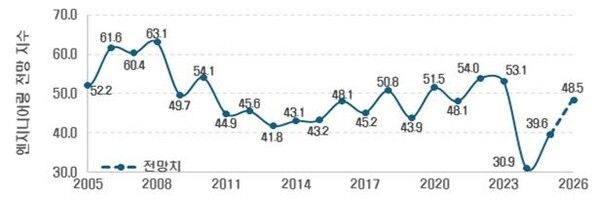 뉴시스 보도에 따르면, 한국엔지니어링협회 엔지니어링산업연구원은 '엔지니어링산업 전망지수'(EOI)를 개발해 이를 활용한 2026년도 산업 전망 결과를 24일 발표했다.