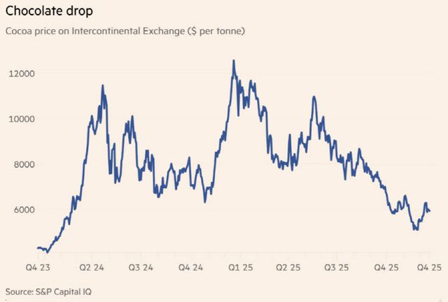 다만 최근 코코아 가격 하락에도 업계 반응은 더딘 모습이다. 코코아는 열매를 맺는 데 2~4년이 걸리는 작물이다. 제조업체들은 선물 계약으로 가격을 미리 고정한다.