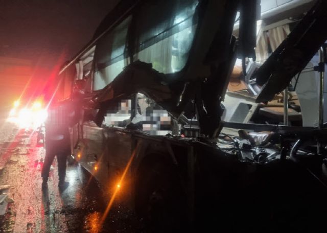 사고는 1차로를 주행하던 버스가 2차로를 달리던 화물차(24톤)를 앞서가는 과정에서 버스 우측면과 화물차 좌측면이 부딪히면서 났다.