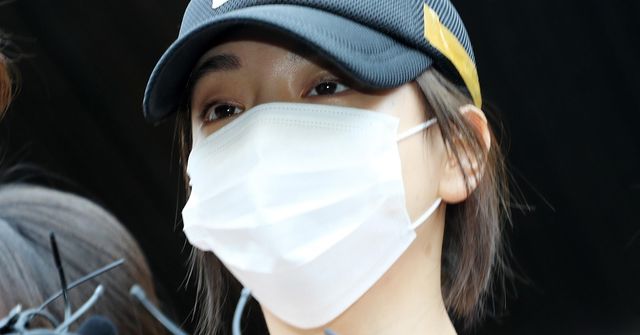 필로폰 투약 혐의로 구속된 황하나 씨가 2019년 4월 12일 경기도 수원시 영통구 수원남부경찰서에서 수원지방검찰청으로 송치되고 있다. / 뉴스1