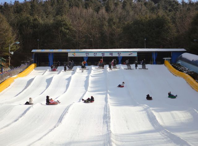 안산썰매장은 겨울에는 눈썰매장으로 운영하고 여름에는 물썰매장으로 이용한다.