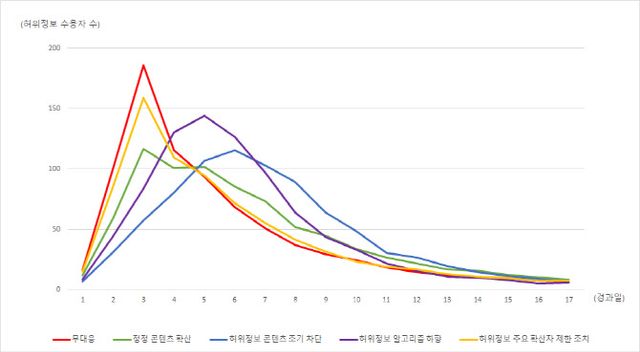 반면 허위정보 알고리즘 하향, 허위정보 주요 확산자 제한 조치는 확산의 속도를 늦추는 데에는 도움이 됐으나, 전체 확산 규모를 줄이는 데에는 충분하지 않았다.