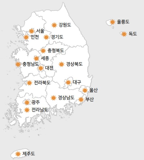 일몰 시각은 △서울 오후 5시 23분 △부산 오후 5시 21분 △대구 오후 5시 22분 △대전 오후 5시 25분 △광주 오후 5시 30분이다. 가장 늦게 해가 지는 곳은 신안 가거도로 오후 5시 40분까지 지는 해를 볼 수 있고, 육지에서는 전남 진도의 세방낙조에서 오후 5시 35분까지 볼 수 있다.