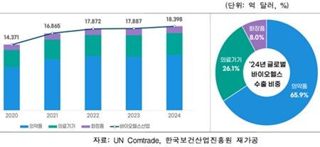 (그래프)글로벌 바이오헬스산업 수출현황(2020-2024)