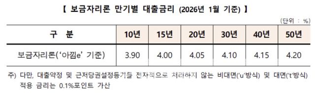 내년부터 대표 상품인 아낌e-보금자리론의 금리는 대출 만기 기준 △10년 3.90% △50년 4.20% 등으로 적용된다. 우대금리를 적용하면 △10년 2.90% △50년 3.20% 수준까지 낮춰 받을 수 있어 서민·실수요자 부담은 다소 완화할 수 있다.