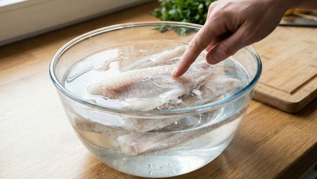 소금물에 냉동 생선을 그대로 담근 뒤 약 7~10분이 지나면 생선이 겉면부터 속까지 고르게 해동된다. 이후 생선을 꺼내 물기를 닦아주면 조직이 물러지지 않으면서 비린내도 적은 상태를 확인할 수 있다.