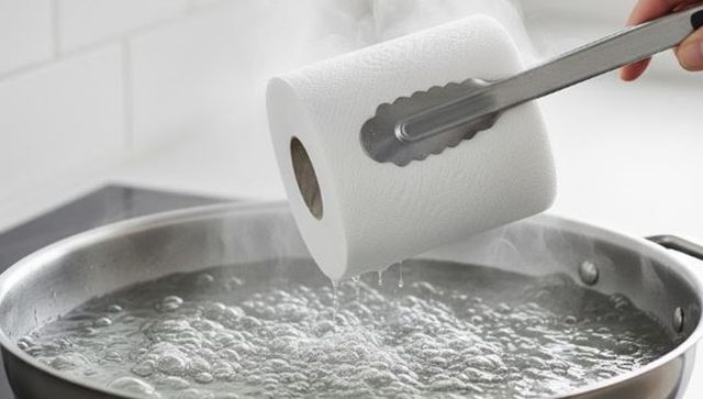 먼저 두루마리 휴지를 끓는 물에 담그는 과정부터 살펴보자. 휴지는 목재 펄프로 만들어져 있어 고온의 물에 닿으면 섬유 결합이 빠르게 느슨해진다. 30초 정도 끓는 물에 담가두면 형태가 무너지고, 꺼내서 부수기 쉬운 상태가 된다. 이 과정은 휴지를 단순한 종이가 아니라 수분을 머금을 수 있는 펄프 덩어리로 바꾸는 역할을 한다. 즉, 이후 섞이는 재료들을 붙잡아주는 흡착체 역할을 하게 된다.