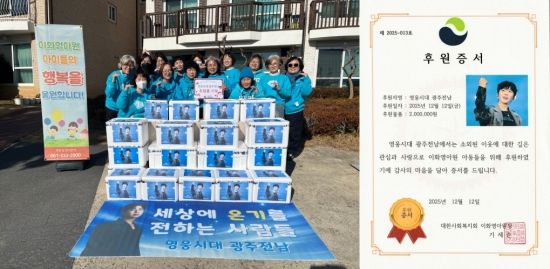 기세순 원장은 “매년 아이들을 위해 정성을 나누는 '영웅시대 광주·전남' 회원분들께 진심으로 감사드린다”라며, “팬들의 선한 영향력과 따뜻한 사랑이 아이들에게 큰 힘이 되고 있다. 앞으로도 아이들의 건강한 성장을 위해 함께 노력하겠다”라고 전했다.
