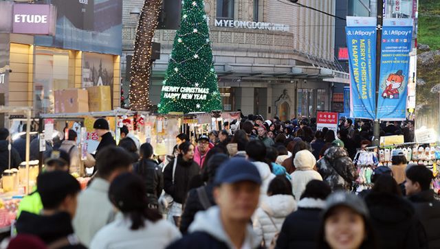 리스마스 이브인 24일 오후 서울 중구 명동거리가 성탄절 분위기를 만끽하려는 시민과 관광객들로 북적이고 있다. / 뉴스1