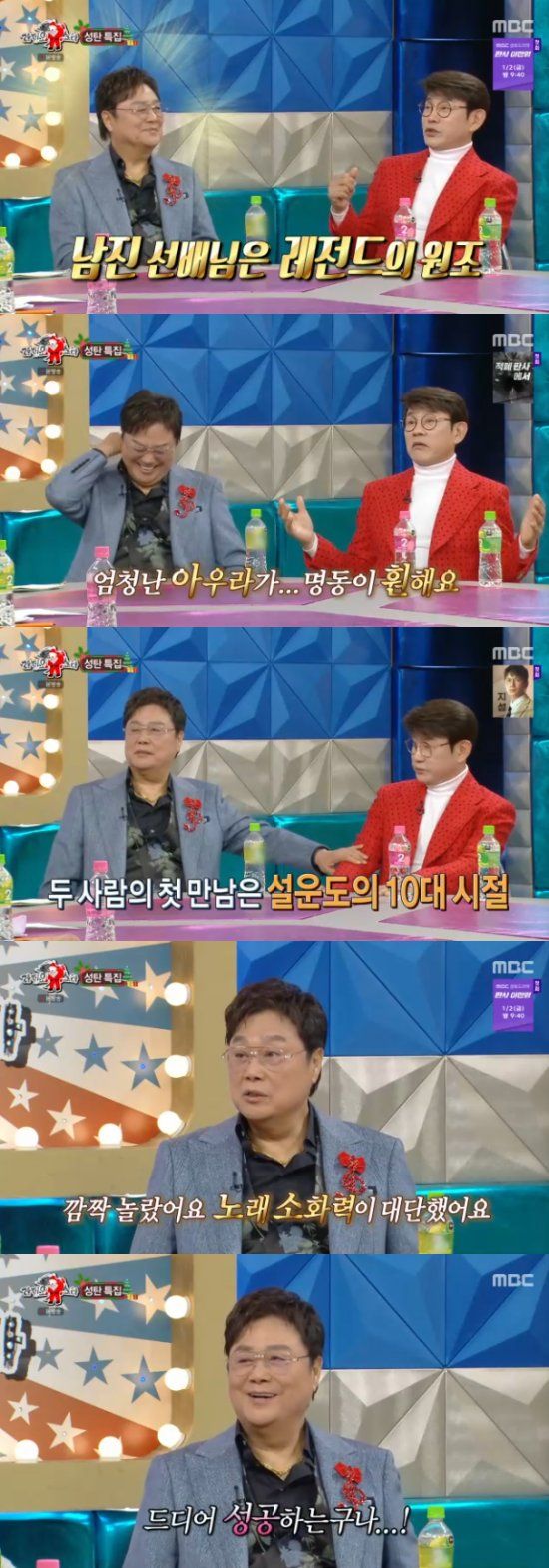 이에 설운도는 "(남진은)진짜 레전드다. 제가 무명 시절 때 명동에서 뵀는데 아우라가 엄청났다. 명동이 훤해지더라"고 회상하며 남진을 추켜세웠다.
