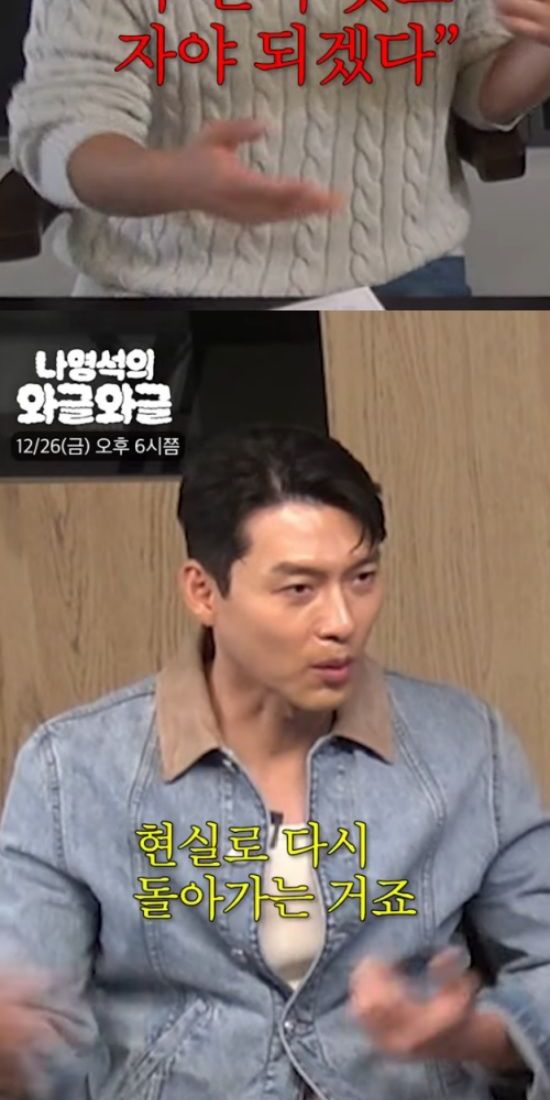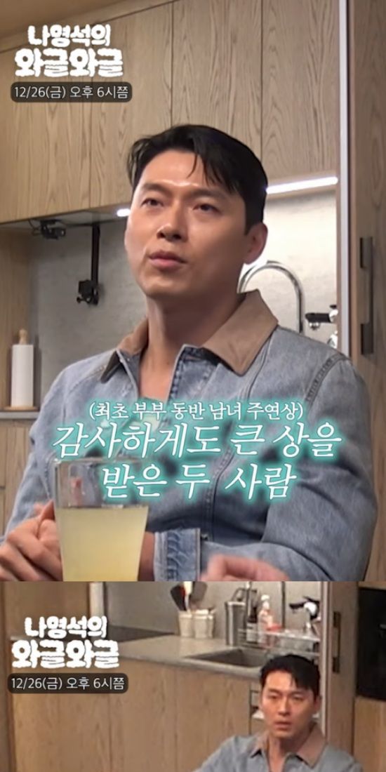 나 PD는 "둘이 같이 상 타도 집에 오면 '아직 안 왔네. 먼저 씻고 자야겠다' 이런 느낌인 거냐"고 물었고, 현빈은 고개를 끄덕이며 "다음 날에도 각자 일하고 현실로 돌아가는 거다"라고 이야기했다.
