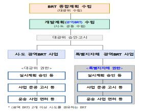 이에 따라 BRT 사업 추진 절차는 ‘대광위의 종합계획 수립 및 개발계획 승인’ 이후 단계부터는 특별지방자치단체가 담당하게 된다. 현장과 밀접한 사무를 지역이 직접 처리함으로써 행정 절차가 간소화되고 사업 속도도 빨라질 것으로 기대된다.
