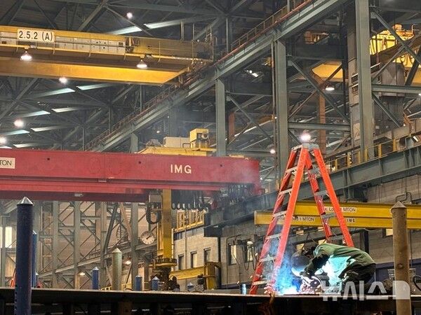 뉴시스 보도에 따르면, 22일(현지 시간) 찾은 미 펜실베이니아주 필라델피아의 필리조선소는 영하에 가까운 날씨에도 각 구역에서 작업이 한창이었다.