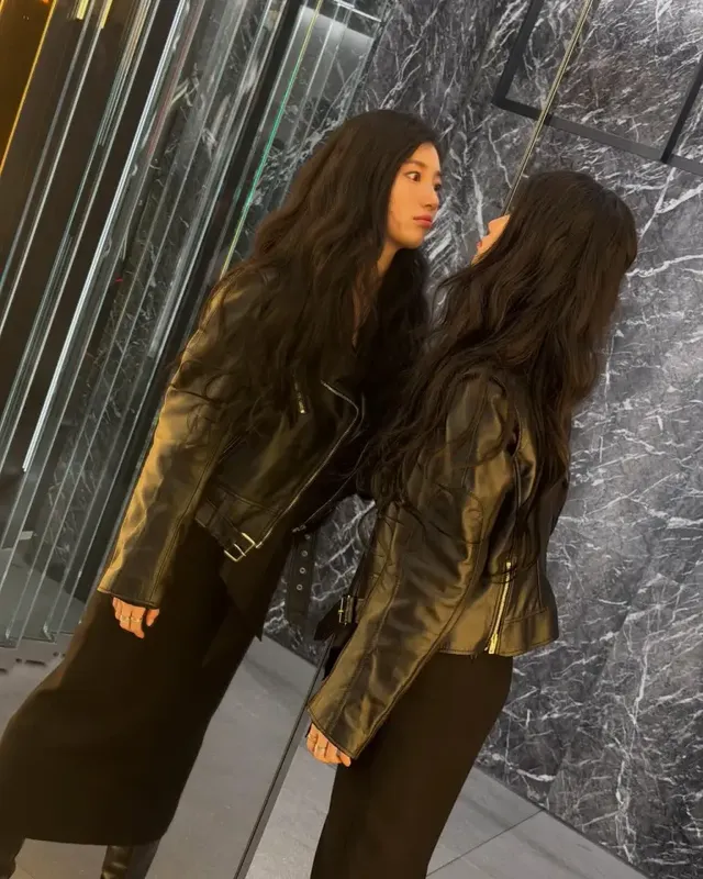 특히 눈길을 끄는 것은 스타일 변화다. 수지는 가죽 라이더 재킷과 롱 스커트를 매치한 올블랙 스타일링으로 기존의 청순한 이미지와는 결이 다른 카리스마를 선보였다. 대리석 벽면을 배경으로 한 차가운 공간감은 ‘도시적인 냉미녀’ 콘셉트를 한층 강화하며, 절제된 포즈와 시선 처리로 성숙한 분위기를 완성했다.