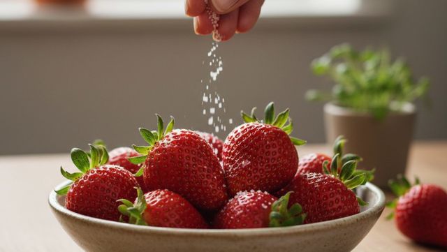 둘째, 수분 배출을 유도해 맛을 농축시킨다. 소금을 뿌리면 삼투압 현상에 의해 과육 속에 있던 수분이 겉면으로 살짝 배어나온다. 이 과정에서 딸기 내부에 남아있는 과당과 포도당의 밀도가 상대적으로 높아지면서 씹었을 때 느껴지는 당도의 농도가 훨씬 진해진다. 또한 겉면에 배어나온 수분이 소금과 섞여 일종의 '천연 시럽' 역할을 하며 과육 전체를 감싸 안는다.