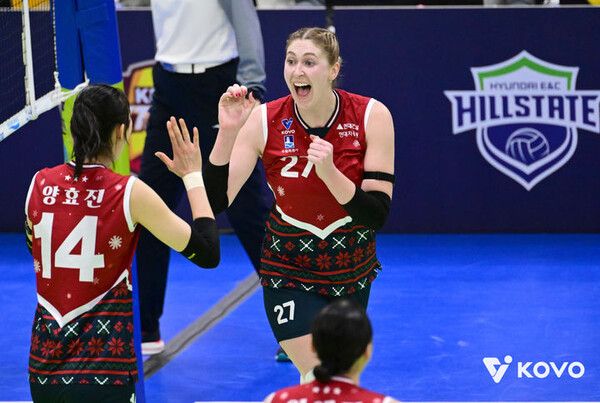 여자 프로배구 현대건설이 주축 선수들의 부상과 아쉬운 심판 판정에도 홈팬들에게 짜릿한 크리스마스 선물을 선사했다.