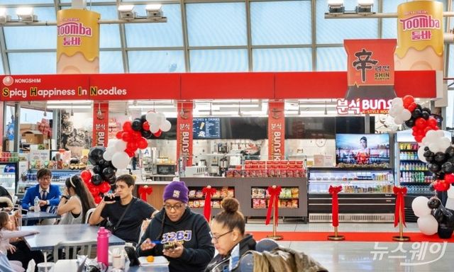 농심이 지난 19일 미국 뉴욕 존 F. 케네디(이하 JFK) 국제공항 터미널 1에 '신라면 분식' 글로벌 4호점을 오픈했다. 자료제공=농심.