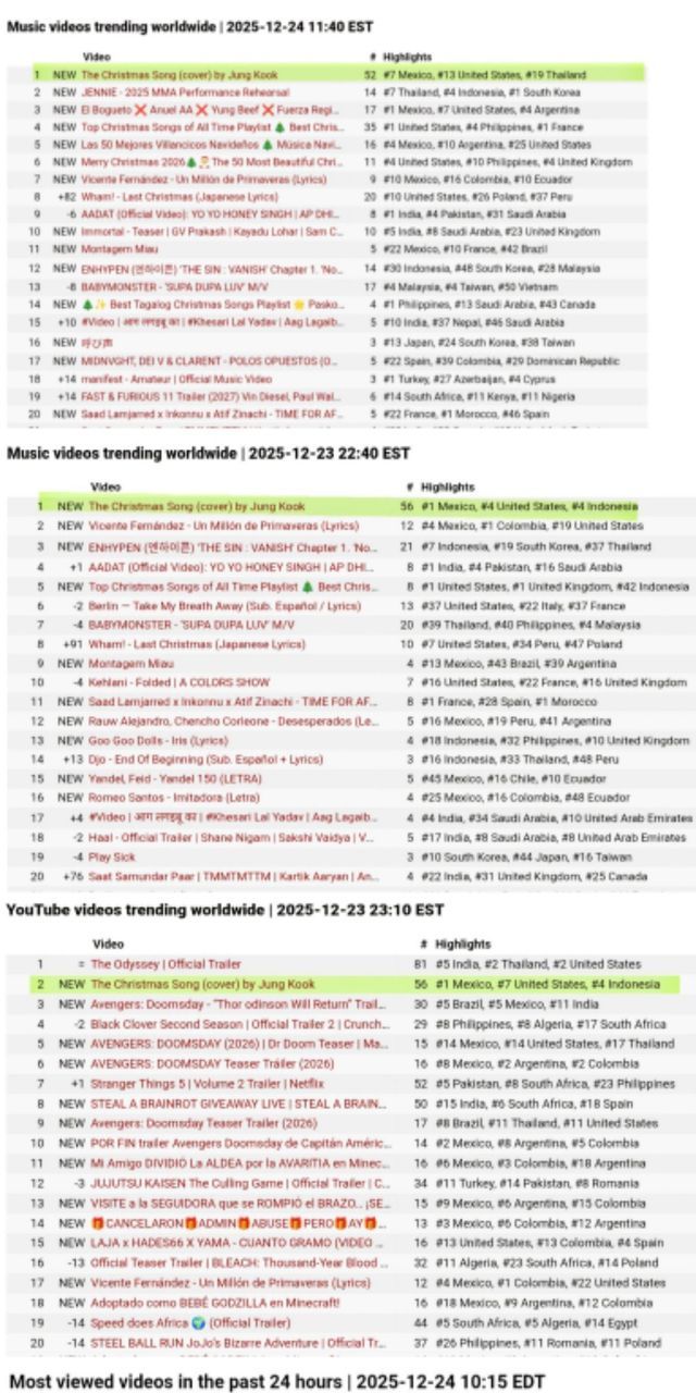영상 공개 이후 팬들의 반응도 이어졌다. “고막 호강한다”, “최고의 크리스마스 선물”, “정국 목소리는 언제 들어도 최고”, “정국 버전 캐럴이라 더 좋다” 등 감상 후기가 빠르게 확산됐다.