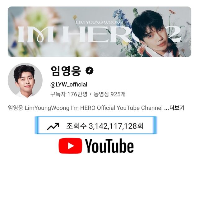 [스포츠동아 | 양형모 기자] 가수 임영웅의 공식 유튜브 채널 ‘임영웅’이 누적 조회수 31억4000만 뷰를 넘어섰다. 25일 기준으로 확인된 수치다. 팬덤 ‘영웅시대’의 꾸준한 관심이 쌓이며 만들어진 결과다. 단기간 이슈가 아니라 오랜 시간 이어진 시청 기록이라는 점에서 무게가 다르다.