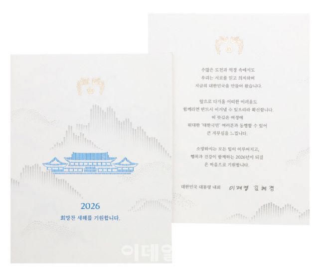 이 대통령은 연하장을 통해 “수많은 도전과 역경 속에서도 우리는 서로를 믿고 의지하며 지금의 대한민국을 만들어 왔으며, 앞으로 다가올 어떠한 어려움도 함께라면 반드시 이겨낼 수 있다”고 전했다. 또 “위대한 대한민국 국민과 이 뜻깊은 여정을 함께할 수 있어 큰 자부심을 느낀다”고도 했다.