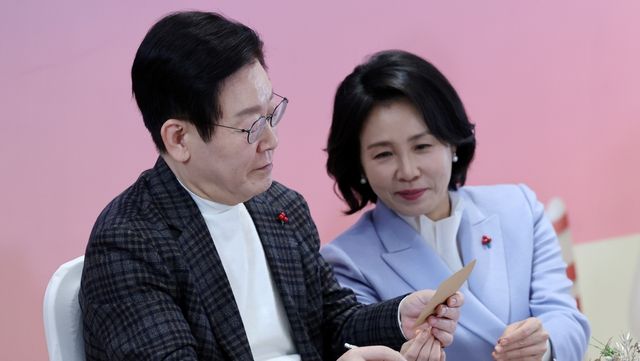 이재명 대통령과 김혜경 여사가 지난 24일 서울 서대문구 신촌세브란스 연세암병원 중입자치료센터에서 열린 희귀질환 환우·가족 현장소통에서 환우가 쓴 편지를 읽고 있다. 기사의 이해를 돕기 위한 사진 / 뉴스1