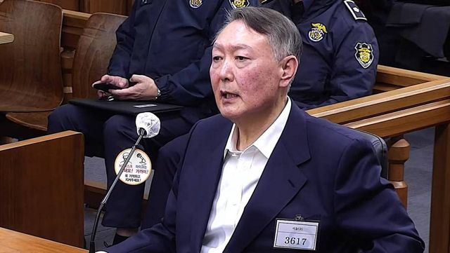 윤석열 전 대통령이 지난달 19일 오후 서울 서초구 서울중앙지방법원에서 열린 한덕수 전 국무총리의 내란 중요임무 종사 등 혐의 공판에 증인으로 출석하고 있다. / 서울중앙지법 제공-뉴스1