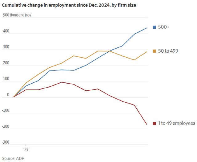 이는 이 회사만의 문제가 아니다. 미국 전역에서 대기업과 중소기업 간 경제적 격차가 빠르게 확대되고 있다. 대형 상장사들이 호실적을 기록하는 동안 중소기업들은 수익 감소와 대규모 일자리 감축에 내몰리고 있다고 월스트리트저널(WSJ)이 25일(현지시간) 보도했다.