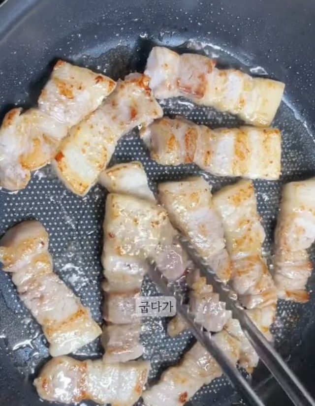 구워지고 있는 삼겹살의 모습. / 유튜브 '내맘요링'
