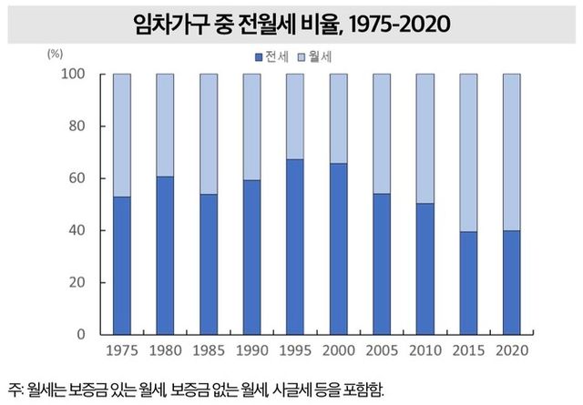 임차가구 중 전월세 비율(1975~2020년) © 국가데이터처