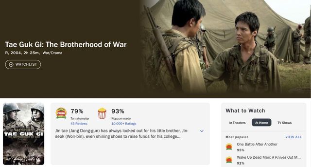로튼토마토에서 '태극기 휘날리며'는 79%의 신선도를 기록 중이다.