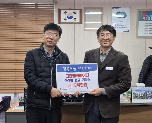 강성식 오성면장은 “어려운 경기 여건 속에서도 이웃을 위한 나눔에 앞장서 신 그린엘리베이터에 깊이 감사드린다”며 “기부자의 소중한 마음이 도움이 필요한 분들께 잘 전달될 수 있도록 하겠다”고 말했다.