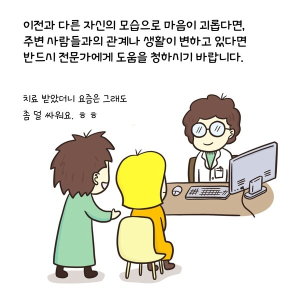 정신건강의학과 전문의 장광호(필명 팔호광장)가 참여한 이번 웹툰은 우울증, 자살 예방, 조현병, 중독 예방 등 총 4화로 구성됐다. 특히 실제 정신건강복지센터 회원들의 자작 시를 수록해 공감과 치유의 메시지를 더했다.