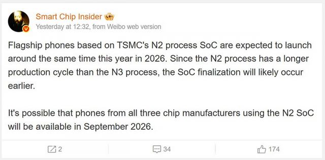 일각에서는 퀄컴과 미디어텍이 애플보다 유리한 위치를 차지하기 위해, TSMC의 기본 2나노 공정인 N2 대신 개선된 N2P 공정을 사용할 것이라는 관측도 제기돼 왔다. 그러나 이번 루머에서는 세 회사 모두 동일한 2나노 공정을 사용할 가능성이 더 크다는 쪽에 무게가 실린다.