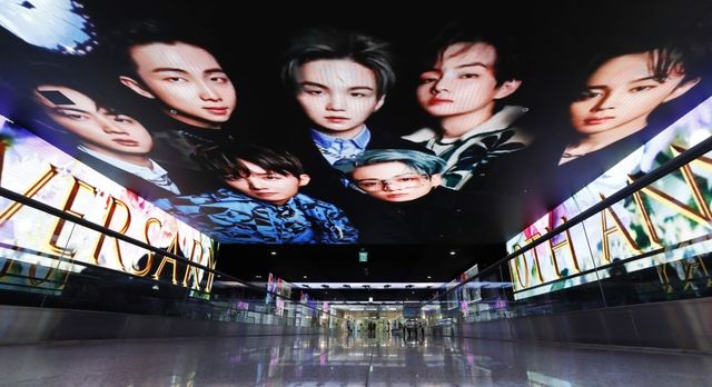 인천국제공항 1터미널 아트미디어터널에 나오는 방탄소년단(BTS) 영상. / 뉴스1