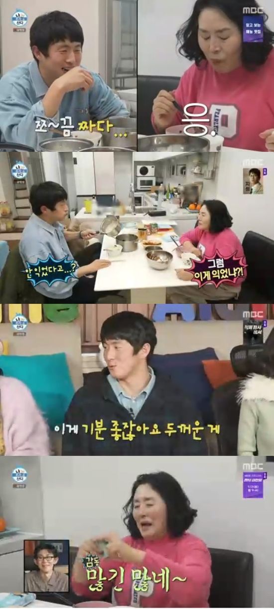 기안84 어머니는 아들이 끓여준 미역국을 다 먹고는 뒤늦게 짜다는 얘기를 했다. 냄비밥은 쌀이 안 익은 상태라고 덧붙였다.