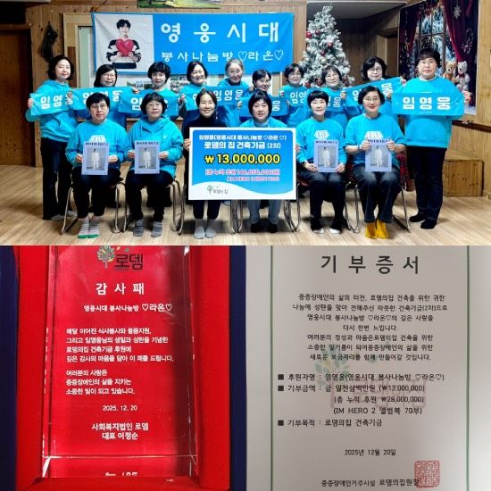 로뎀의집 이정순 원장은 "재건축 기금이 부족해 공사를 시작조차 못 하는 상황을 아시고, 건축 기금을 지원해 주셔서 깊은 감사를 드린다"라고 말했다. 이어 "어려운 시기마다 늘 먼저 마음을 내주신 라온님들의 따뜻한 사랑을 로뎀의 모든 가족과 함께 기억하며 열심히 살아가겠다"라고 전했다.