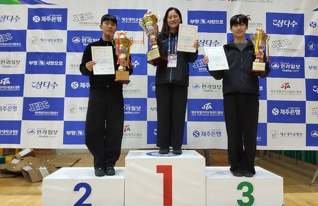 한편 이날 오전에 열린 대회 개회식에서 한라일보 김한욱 사장은 "제주자치도태권도협회와 함께 침체된 태권도 활성화를 위해 첫 대회를 개최하게 됐다"며 "날씨가 추운데도 열정을 보여준 태권도인들에게 감사하다"고 말했다.