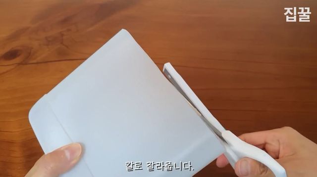 다 쓴 우유통을 가위로 자르는 모습. / 유튜브 '집구석구석꿀팁, 집꿀'