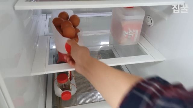 우유통에 계란과 과자, 조미료 통들이 보관된 모습. / 유튜브 '집구석구석꿀팁, 집꿀'