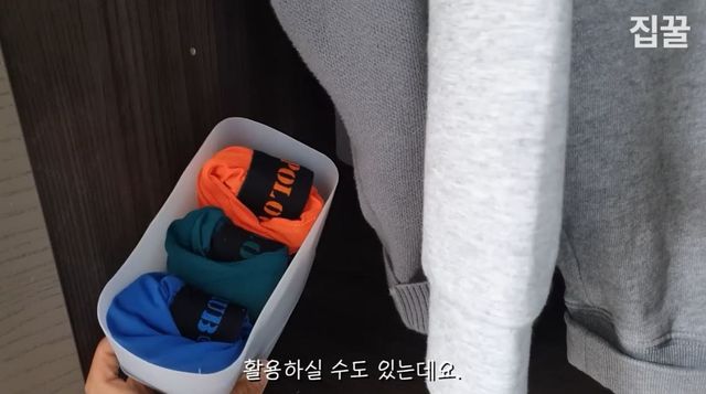 속옷과 양말을 넣기 좋게 손질된 우유통의 모습. / 유튜브 '집구석구석꿀팁, 집꿀'