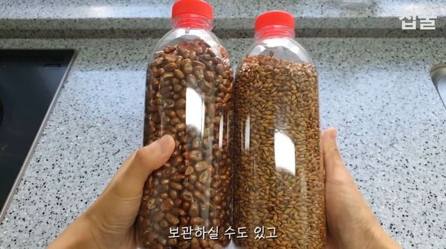 식재료가 보관된 우유통. / 유튜브 '집구석구석꿀팁, 집꿀'