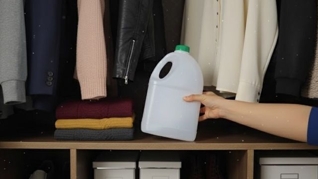 다 쓴 우유통을 옷장에 넣는 모습. 유튜브 채널 '집구석구석꿀팁 집꿀' 영상 속 장면을 AI로 재구성한 이미지.