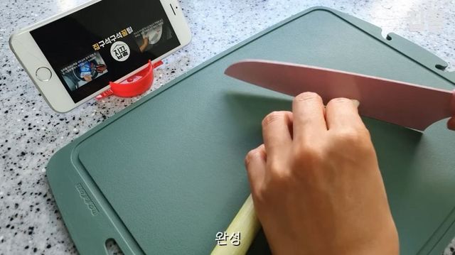 마지막으로 뚜껑 활용법도 소개됐다. 뚜껑을 일자로 평행하게 자른 후 뒷부분을 대각선으로 잘라 마무리하면 핸드폰 거치대가 완성된다. 부엌에서 요리하면서 핸드폰을 보기에 유용하다.