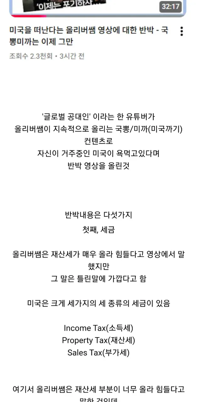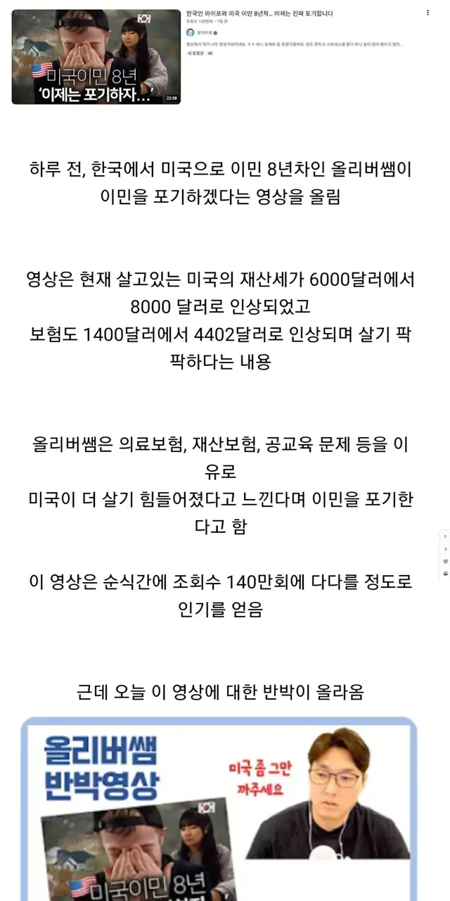 미국 이민 그만두겠다는 영상 저격당한 올리버쌤 정리