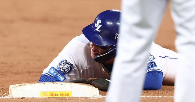 21일 대구삼성라이온즈파크에서 열린 2025 신한 SOL뱅크 KBO 포스트시즌 플레이오프 3차전 한화 이글스와 삼성 라이온즈의 경기, 삼성 강민호가 3회말 무사 1루 상황 류지혁의 우익수 플라이 때 1루에서 포스 아웃된 후 아쉬워하고 있다. / 뉴스1