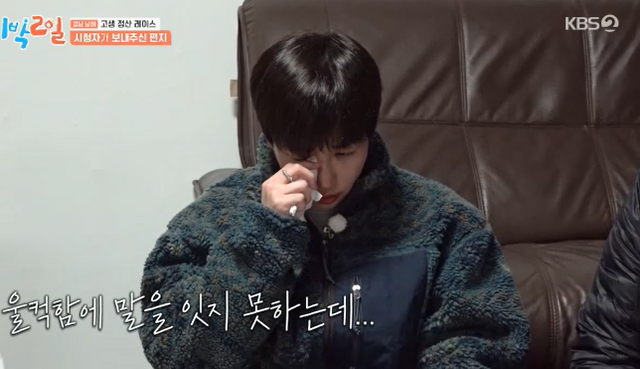 이날 한 시청자가 “힘든 상황을 잠깐이나마 잊을 수 있게 해준 게 ‘1박 2일’이었다”고 고마움을 전하자 딘딘은 갑자기 말이 없어진 채 눈물을 글썽거렸다.