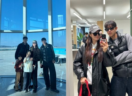 사진 속 김성은 정조국 부부는 아이들과 함께 비행기를 타기 전 인증샷으로 여행의 설렘을 드러냈다. 아빠 정조국 못지않게 키가 큰 첫째 아들의 폭풍 성장이 이목을 집중시킨다.