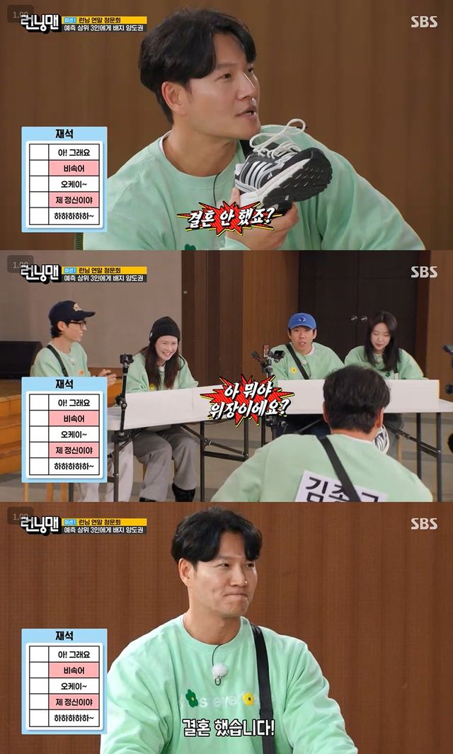 양세찬도 "뭐냐. 위장이냐"고 거들었고, 유재석은 "그(결혼식) 이후로 우린 본 적이 없다. 연락하는 것도 본 적이 없다"며 의문을 제기했다. 이에 김종국은 "(결혼)했다"고 답했고, "진짜 했냐"고 여러 차례 받은 질문에 "진짜했다"고 거듭 답했다.