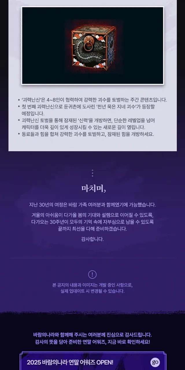 내년이 30주년이라 업데이트에 힘 좀 주는듯